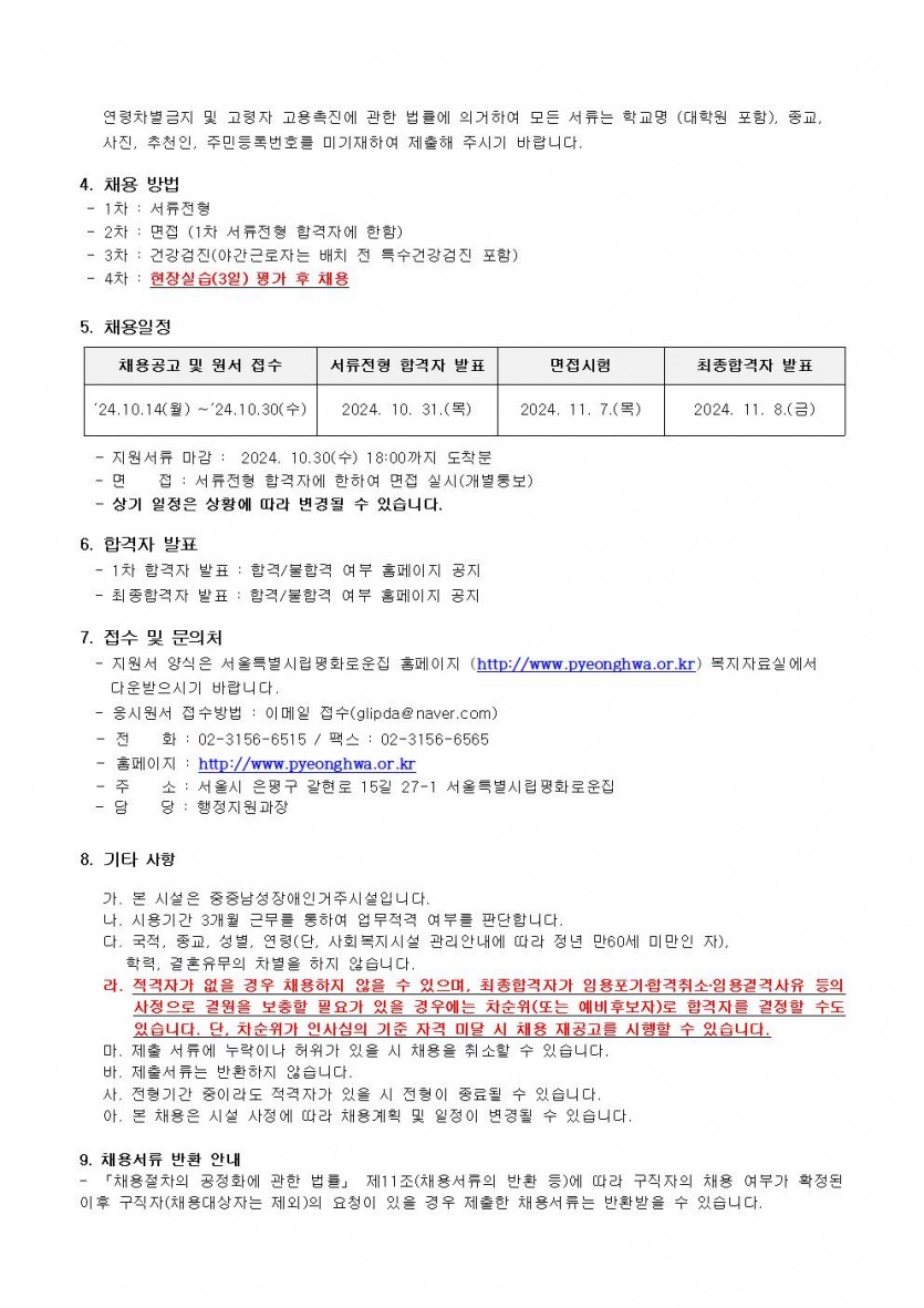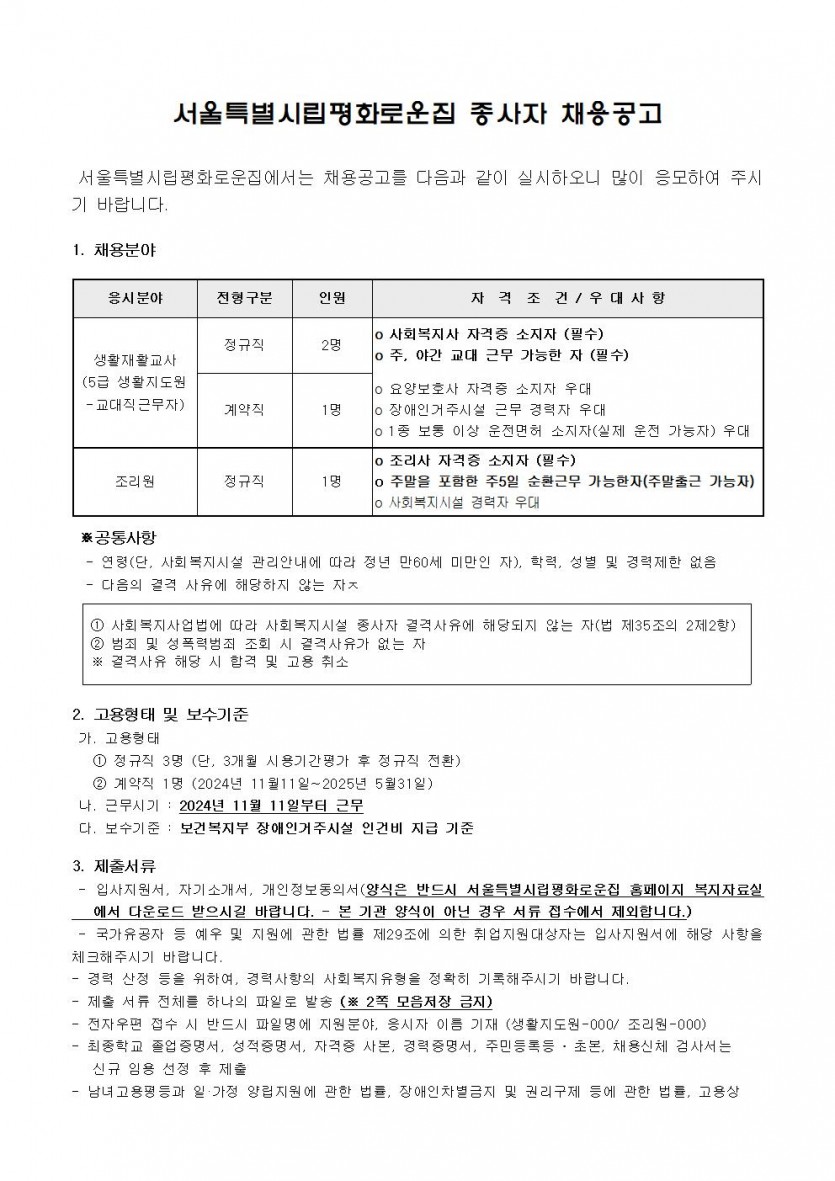 2024년 11차 직원채용 모집 공고 페이지 정보 작성자 한동주 작성일 24-10-14 17:49 조회 16,586회 댓글 0건 첨부파일 파일 2024년-생활지도원 조리원 11월.hwp (48.0K) 144회 다운로드 DATE : 2024-10-14 17:50:30 파일 시립평화로운집 입사지원서이력서,자기소개서및개인정보동의서.hwp (22.5K) 86회 다운로드 DATE : 2024-10-14 17:50:30 본문 이전글 다음글 목록 답변