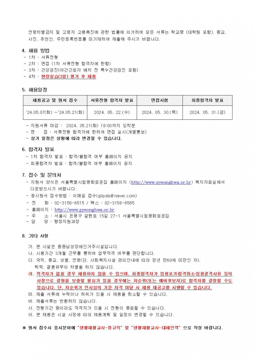 시립평화로운집 5차 직원채용 페이지 정보 작성자 한동주 작성일 24-05-07 17:45 조회 18,063회 댓글 0건 첨부파일 파일 시립평화로운집 입사지원서이력서,자기소개서및개인정보동의서.hwp (22.5K) 92회 다운로드 DATE : 2024-05-07 17:45:14 파일 2024년-생활지도원-5월.hwp (36.5K) 143회 다운로드 DATE : 2024-05-07 17:45:14 본문 이전글 다음글 목록 답변
