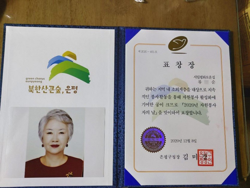 후원자·봉사자 이야기 | 우수자원봉사자 류0순 봉사자님 은평구청장 표창장 축하드립니다! 페이지 정보 작성자 박성호 작성일 20-12-14 18:11 조회 12,710회 댓글 0건 본문 - 은평구청장 표창장 우수자원 봉사자 류O순2011년 부터 시립평화로운집을 위해 아낌없이 봉사활동을 해주신 류O순 봉사자님 께서 2020년 은평구 우수자원봉사자 표창을 수여 받았습니다!! 진심으로 축하 드립니다^^ 앞으로도 평화로운집을 위해 많은 활동 부탁드리겠습니다. 감사합니다. 이전글 다음글 목록