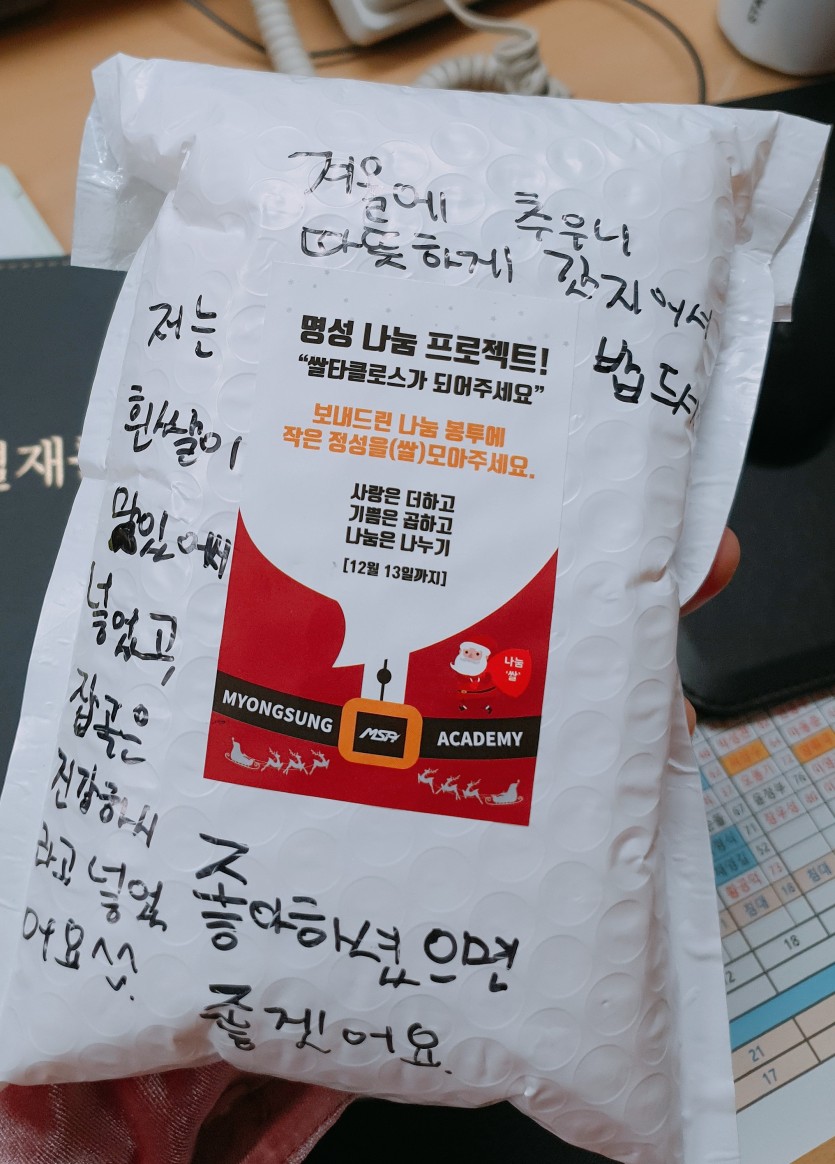 후원자·봉사자 이야기 | 명성체육관 후원물품 전달식 페이지 정보 작성자 박상은 작성일 19-12-30 17:27 조회 12,819회 댓글 0건 본문 매년 연말이면 우리 평화로운집에 따뜻한 나눔을 전하러 오시는 곳이 있습니다.바로 얼마 전 우수자원봉사단체상을 수상한 명성체육관 입니다!명성체육관에 다니는 아이들이 관장님의 마음을 따라나눔을 실천하고자 쌀을 모아주었습니다.아이들이 몇 달동안 함께 모아준 쌀 덕분에평화로운집 가족들은 올 겨울 내내 든든히 지낼 수 있을 것 같습니다^^천사같은 아이들의 손길로 모아진 값진 쌀!진심으로 고마움을 전합니다~♡ 이전글 다음글 목록