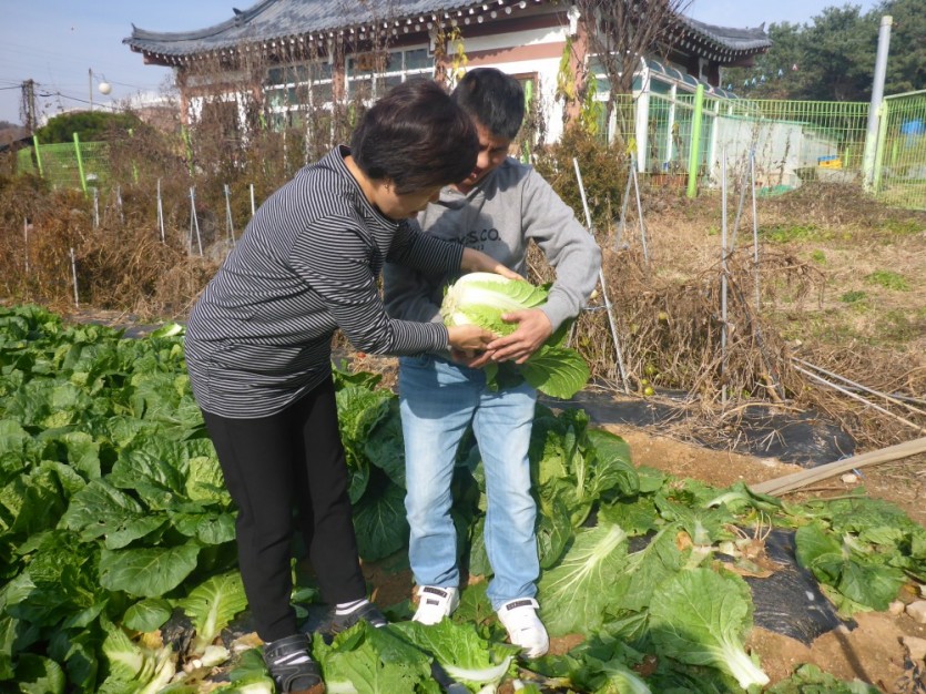 텃밭에서 배추도 갓 수확하여 지글지글 구운 삼겹살에