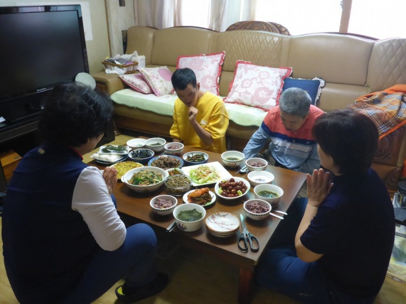 행주로 상과 그릇도 씻고, 가족끼리 빙 둘러 앉아 서로 많이 드시라는 덕담도 주고 받으며 먹는 식사...