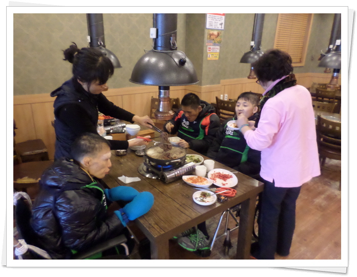 2생활관 기분좋은방 나들이활동 페이지 정보 작성자 이선희 작성일 14-02-18 16:14 조회 8,782회 댓글 0건 첨부파일 본문 2생활관 귀요미 가족들이 좋아하는 불고기 외식을 겸한 나들이 활동을 하고 왔습니다. 평소 행동장애로 인해 외출이 어려웠던 김인*님, 노상*님, 이용*님을 모시고 서오능 임가내에서 맛있는 불고기 만찬을 하고 평화의공원을 산책하고 돌아왔습니다. 이전글 다음글 목록
