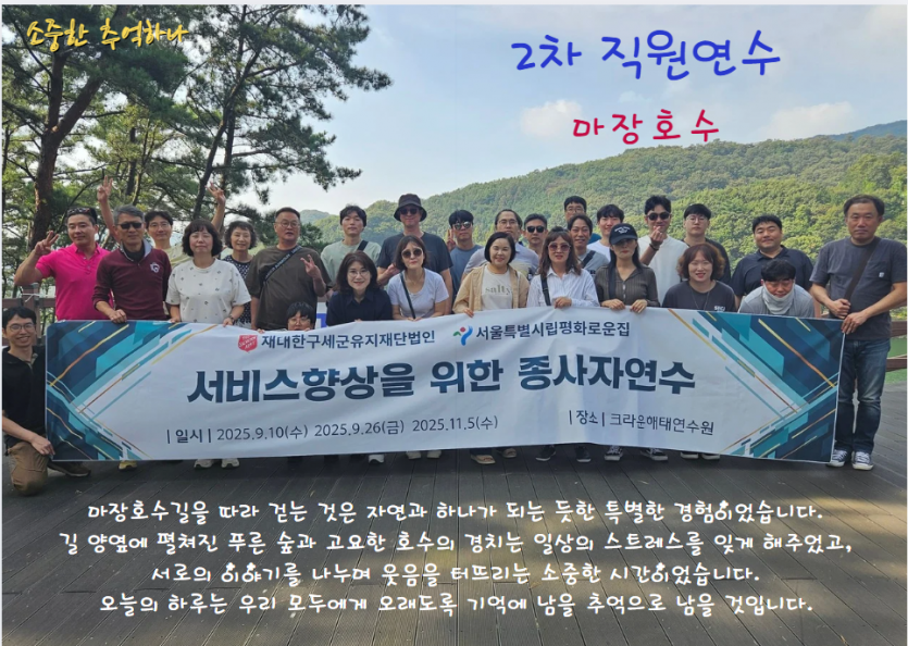 0926 2차 직원연수 페이지 정보 작성자 장설궁 작성일 25-09-29 17:03 조회 1,330회 댓글 0건 본문 0926 2차 직원 연수 3차 직원 연수는 11월 5일 진행 합니다. 2차 진원연수 참여하신 직원여러분 수고 하셨습니다. 경품추첨 하신분은 사회복지지원과로 오시어 경품 받아가시면 감사하겠습니다. 이전글 다음글 목록