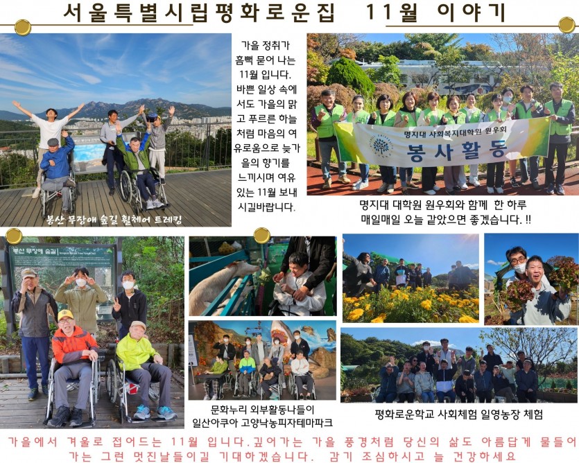 2023년 11월 후원 감사 편지 페이지 정보 작성자 장설궁 작성일 23-10-30 16:49 조회 7,331회 댓글 0건 본문 낙엽이 수북이 쌓인 느티나무길을 걸으며 가을이 얘기하는 소리를 애써 들어보려 합니다 가을이 전해준 아름다운 기억을 간직하며 언제나 즐겁고 좋은 일들만 가득한 11월 되시길 바라며 감사 인사 올려봅니다 이전글 다음글 목록