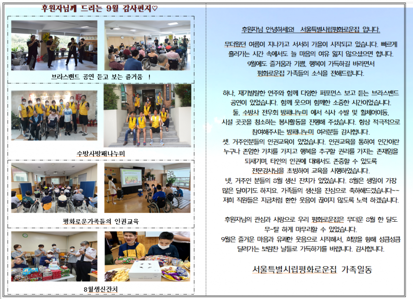 2022년9월후원자감사편지 페이지 정보 작성자 장설궁 작성일 22-09-14 10:51 조회 11,184회 댓글 0건 본문 두 번 오는 하루는 없습니다.반복되는 하루 같지만 같은 날은 단 한 번도 없습니다.오늘 하루를 아낌없이 사랑하고 후회 없이 살아가고즐겁고 행복하게 쓰시길 바랍니다.날마다 멋진 하루 보내세요~~ 이전글 다음글 목록