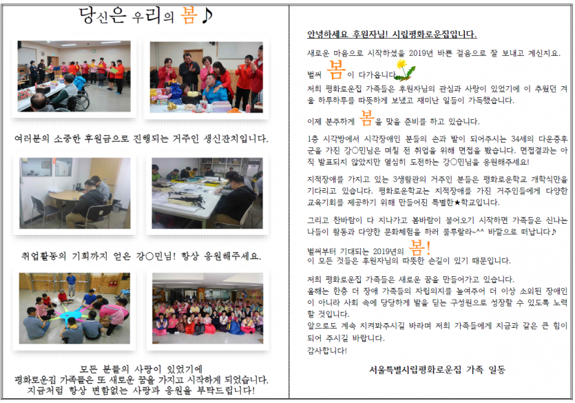 2019년 3월 후원자 감사편지 페이지 정보 작성자 박상은 작성일 20-09-11 11:30 조회 13,691회 댓글 0건 본문 늘 나눔으로 함께해주시는 후원자님께감사의 편지를 올립니다. 이전글 다음글 목록