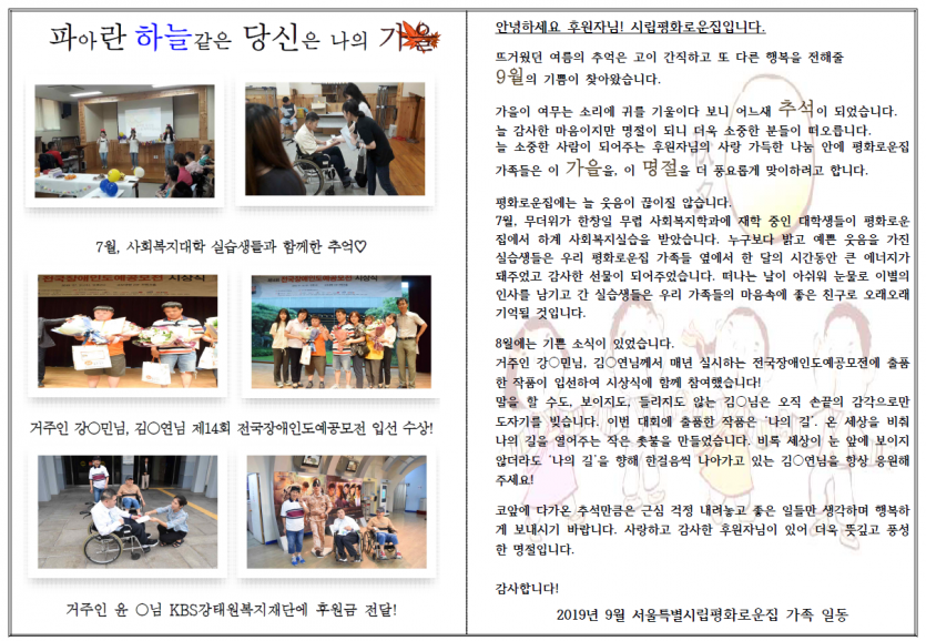 2019년 9월 후원자 감사편지 페이지 정보 작성자 박상은 작성일 20-09-11 11:52 조회 13,544회 댓글 0건 본문 늘 나눔으로 함께해주시는 후원자님께감사의 편지를 올립니다.첨부파일 열람 부탁드립니다♡ 이전글 다음글 목록