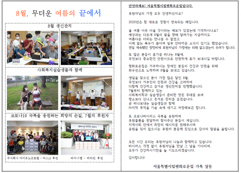 2020년 8월 후원자 감사편지 페이지 정보 작성자 박상은 작성일 20-09-11 15:55 조회 13,698회 댓글 0건 본문 늘 나눔으로 함께해주시는 후원자님께감사의 편지를 올립니다. 이전글 다음글 목록