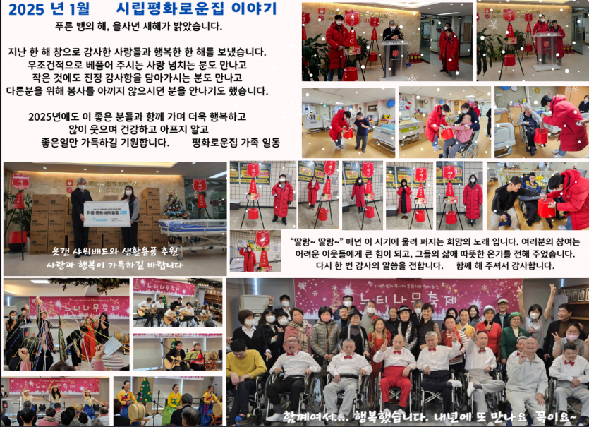 2025년 새해가 밝았습니다. 1월 후원 감사편지 페이지 정보 작성자 장설궁 작성일 25-01-02 11:36 조회 5,068회 댓글 0건 본문 아쉬워한다고 해서 돌아올 수 있는 시간이라면 100번이고 1000번이고 뒤를 돌아보겠지만.2024년의 아쉬움, 슬픔, 고통 모두 보내시고보낸 그 자리에 설렘과 기쁨, 행복만 흘러 들어오길2025년엔 많이 웃고 행복했으면 좋겠습니다. 이전글 다음글 목록