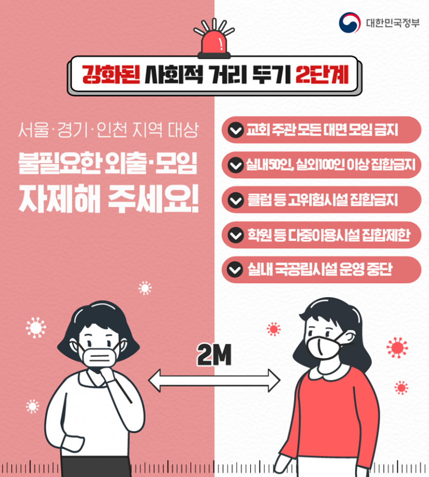 사회적 거리두기 2단계 격상에 따른 봉사활동 중단 안내 페이지 정보 작성자 박성호 작성일 20-08-20 13:50 조회 17,613회 댓글 0건 본문 최근 수도권을 중심으로 퍼진 코로나19 바이러스로 인해 사회적 거리두기가 2단계로 강화되었습니다.평화로운집은 시군구의 권고사항에 의해 2020년 3월부터 현재까지 모든 봉사활동을 중단하였습니다. 항상 평화로운집을 아껴주시고 사랑해 주시는 모든 봉사자님께 감사드립니다.사회적 거리두기와 단계별 국민 행동수칙, 개인별 방역까지 꼭! 지켜 주시기를 바라며다시 만나는 날까지 건강하시도록 항상 기도하겠습니다.감사합니다. 이전글 다음글 목록